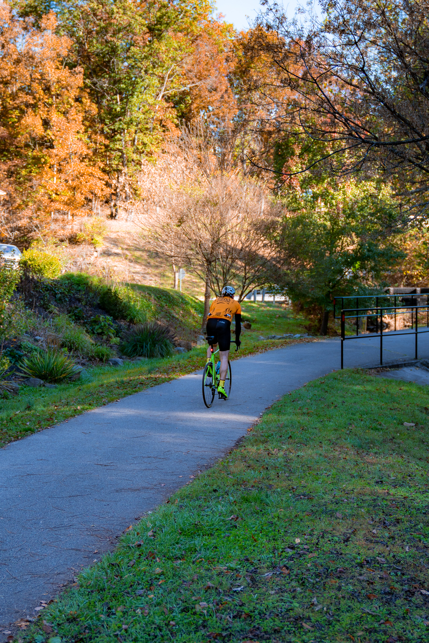 Parking is available at the Christiansburg Recreation Center lot. From here it is about 7.5 miles to the Blacksburg Library, 15 miles roundtrip.