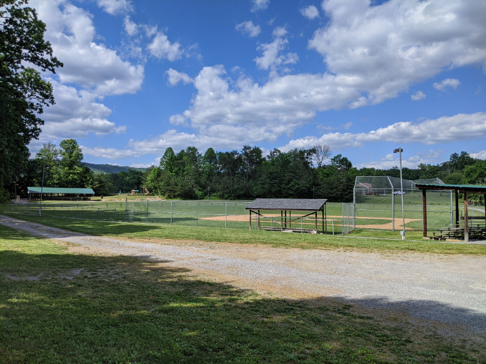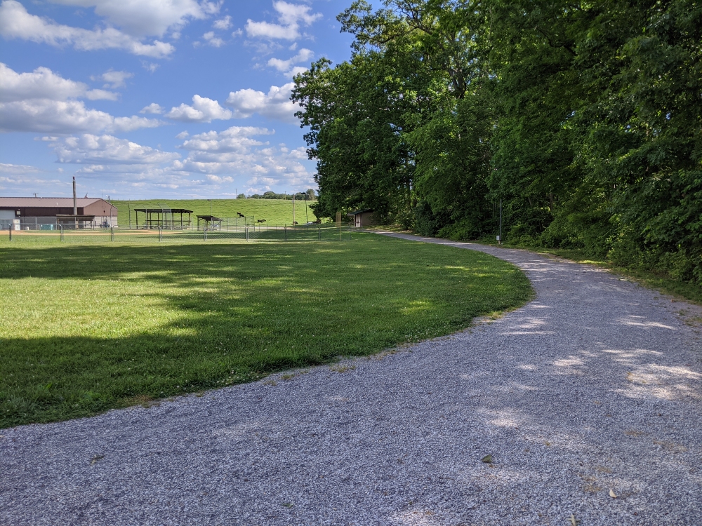 A walking path encircles the ball field and open green space. The flat terrain is perfect for children's games, playing with the dog, and picnicking. Relax with countryside views just 15 minutes outside the Town of Blacksburg.
