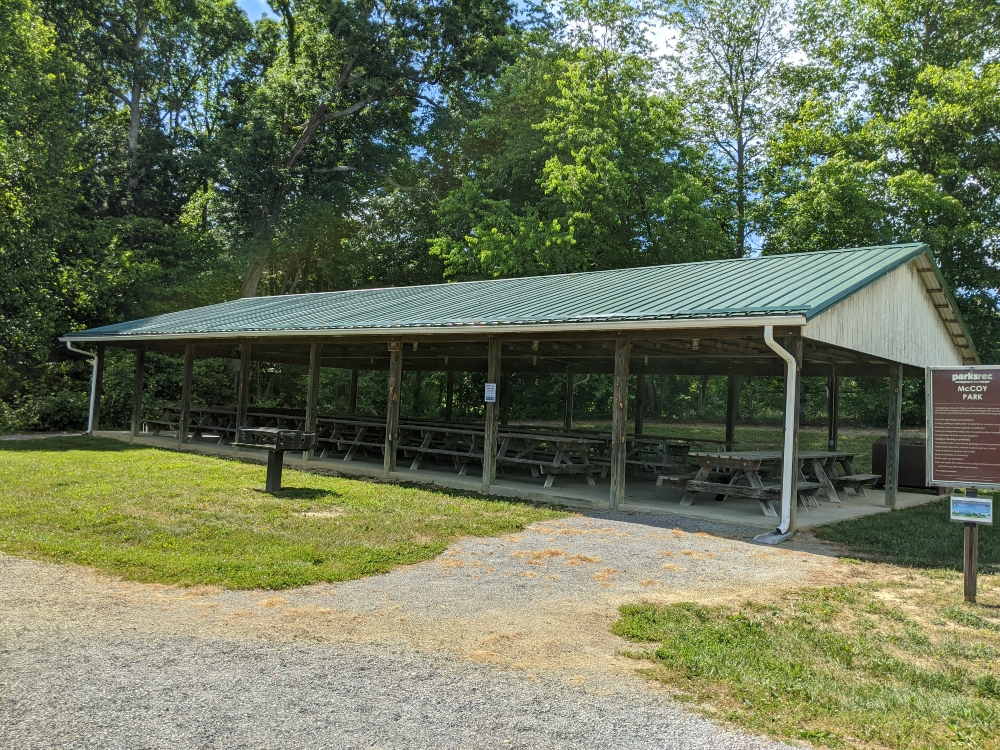 Get together for a picnic or party under our shelter! An ADA accessible path leads from the parking lot to the shelter and the playground. There is seating available for approximately 60 people across 20 tables. Other amenities include a grill, electrical outlets and lights, and waste receptacles.