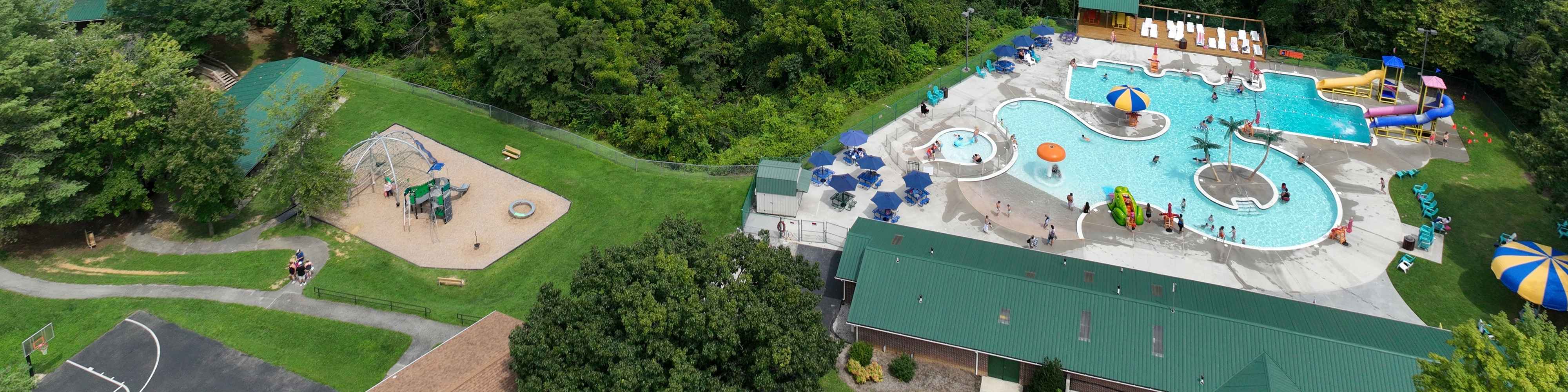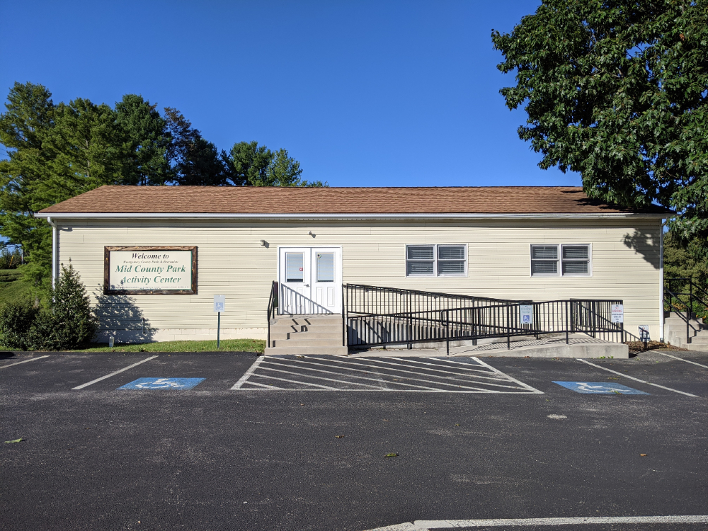 Get together for a picnic or party under our shelters! At Mid County Park we have two large picnic shelters next to the Frog Pond Pool, and a third smaller shelter at the disc golf course. An ADA accessible path leads from the parking lot to Shelter #1, Shelter #2, the restrooms, and the playground.
