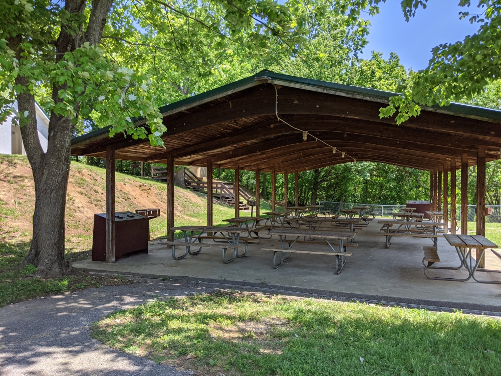 Shelter #1 is located directly next to the playground, and Shelter #2 is located directly next to the restrooms. Each shelter can hold approximately 100 guests. Other amenities include grills, electrical outlets, and waste receptacles.