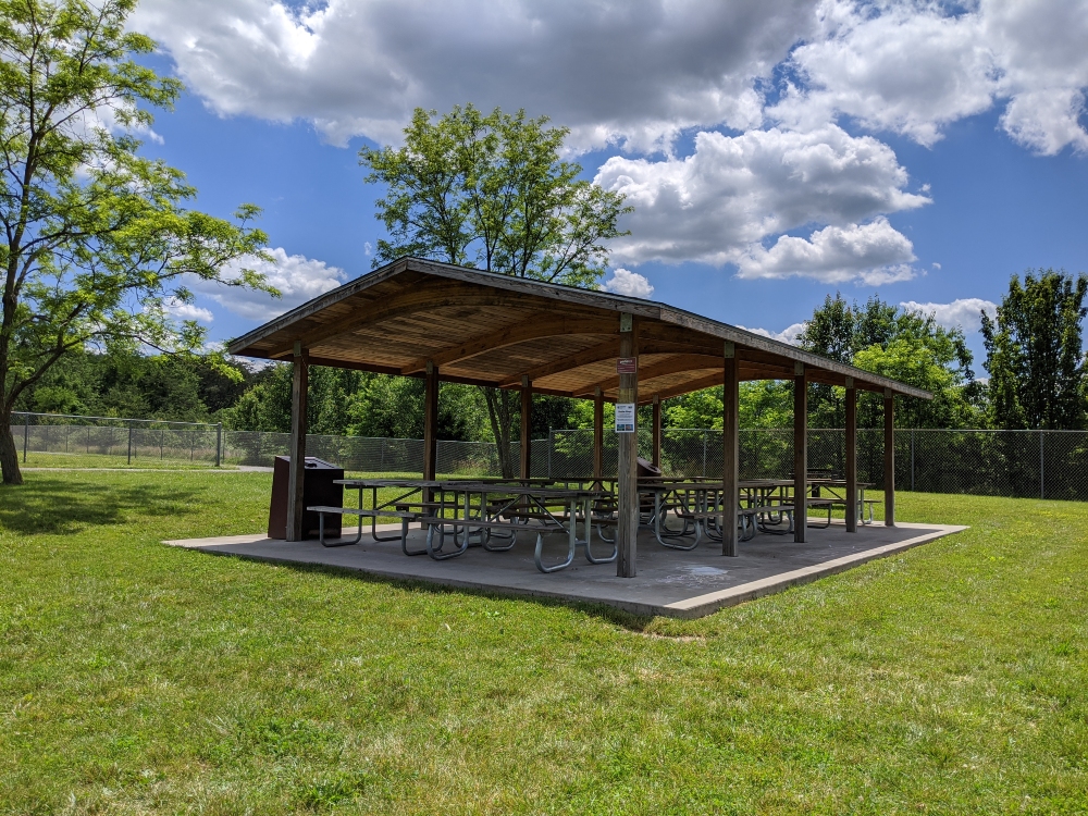 Get together for a picnic or party under our shelter! There is seating available for approximately 50 people across 10 tables. Other amenities include a grill, waste receptacles, and restrooms next to the ball field.